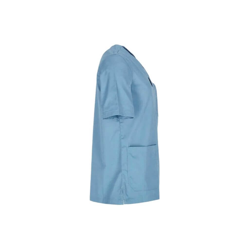 Este blusón cuenta con un cuello amplio en forma de V, ideal tanto para personal sanitario como para equipos de estética y servicios. Dispone de tres bolsillos tipo parche, dos en la zona de la cintura y uno en el pecho, para tener a mano herramientas, útiles o accesorios del día a día. Las aberturas laterales mejoran el confort y facilitan la movilidad, lo que lo convierte en una opción versátil para distintas profesiones.